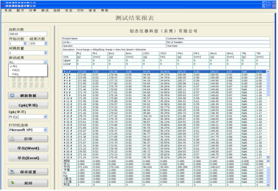 ※測試項(xiàng)目可輸入上、下限規(guī)格值,測定結(jié)果可自動判定OK或NG;